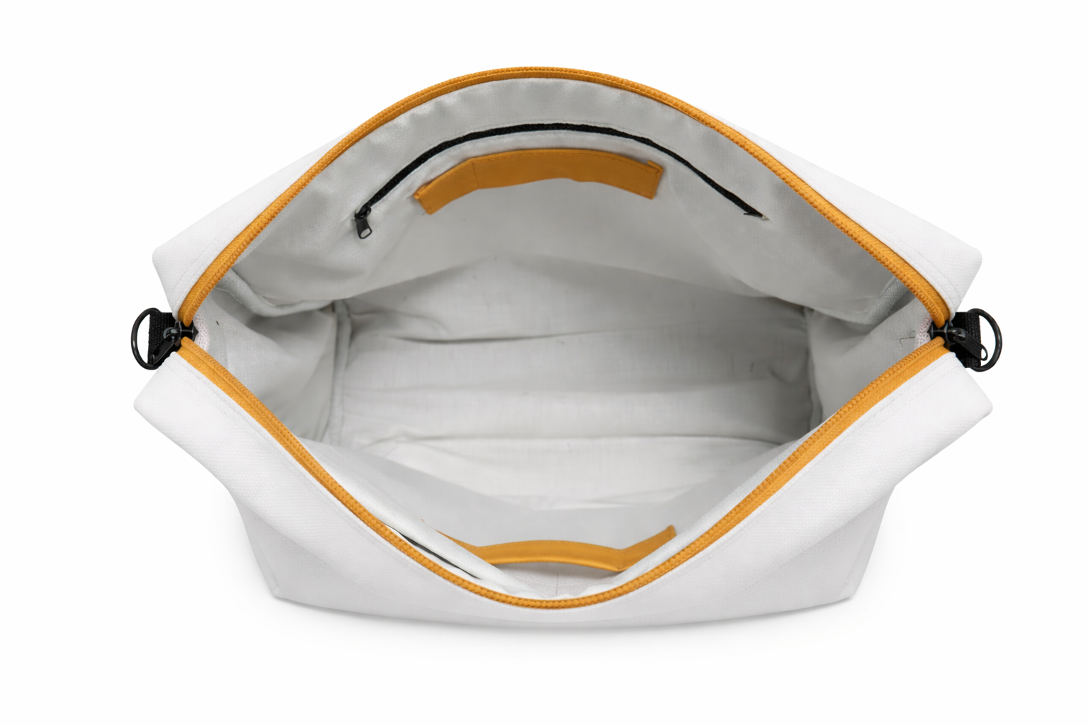 A sleek white messenger bag designed to fit seamlessly into it. Lightweight yet durable, it offers ample space for your essentials while maintaining a clean, modern aesthetic. Perfect for work, travel, or everyday use.